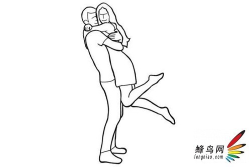 让女孩向前挑起,扑向对方的怀中。在男方伸手抱紧她的同时按下快门。对于摄影师把握快门的能力有一定要求。过早无法拍到拥抱的瞬间,过晚的话女孩的双腿将会着地,失去跳跃的感觉。建议使用相机的连拍功能。