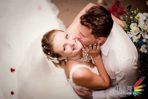 让情侣们的头部对向紧挨着,女方用手抚摸对方的面颊。待到他们脸上流露出最幸福的表情的那一刻按下快门。注意使用长焦镜头拍摄局部,让构图更充实。