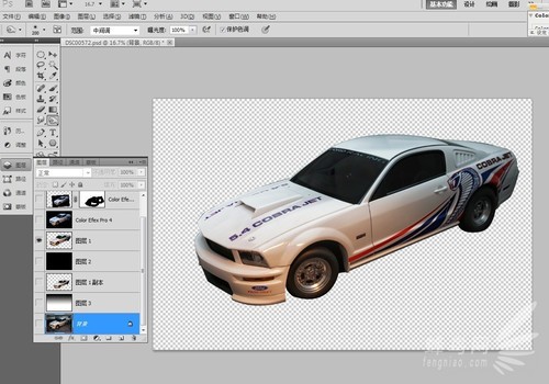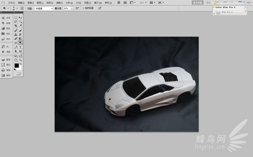 小结:在这张照片前期拍摄的时候,由于拍摄时 并没有很好的对背景进行处理,所以造成了拍摄出来的照片背景杂乱,只能用将车主体抠出来的办法将照片完成。所以当各位在DIY制作柔光箱的时候一定要注意 选择平整的背景,当时只顾着考虑反光材料中既能承重又能反光的材料就是这些泡沫塑料,却没有考虑使用泡沫塑料形成杂乱的背景。