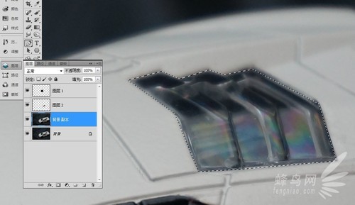 本页小结:通过选区结合加深减淡工具便可以完美处理挡风玻璃上的色斑。经过处理后的车身细节相比之前更丰富,挡风玻璃虽然变成不透明的状态,但是整体却没有了凌乱。