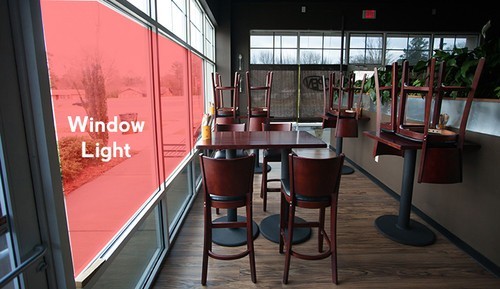 当我来到陌生的餐厅,我最期待的就是一扇大窗户(像下图一样)。这样的窗户能为你提供最好的光线条件。在这种环境中窗户光最适合做主光源了。