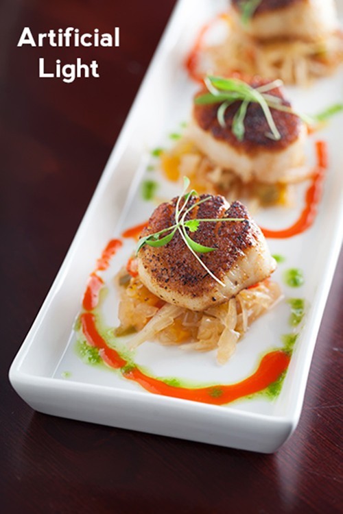 这是最简单的拍摄方式了,整个微型影棚搭建起来非常快,拍摄时间在下午的话,甚至不会影响餐厅晚上的营业。不过这个方式却不是时时行得通……所以,让我们来看看另外一个方案。