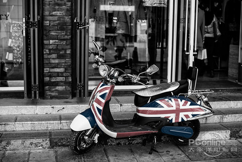 50L随拍,车很新,色彩很赞,很开心的就抬起相机拍了下来,用了2.5的光圈控制景深。后期处理采用了蒙版的方式先把照片做成黑白,然后再用橡皮擦工具把小车慢慢擦出来。