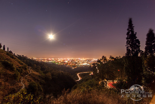 14L夜景,靠月光把整个场景曝光,F8的光圈,137秒的快门,因为目测远处的城市30秒快门足以,增加了一片三档的中灰渐变减少了天空和城市的曝光。后期增加了饱和度和对比度。