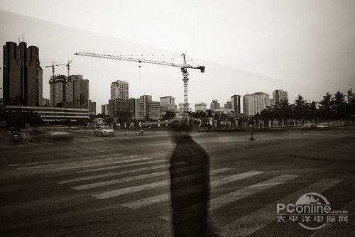TS-E24都市,想拍无人的街道,但是又不想让街道彻底没有生气,特别找了一个十字路口用了ND400的中灰镜,再红绿灯到红灯的时候按下快门,等红灯的人被相机记录了下来。后期也是直接就调整成了黑白。
