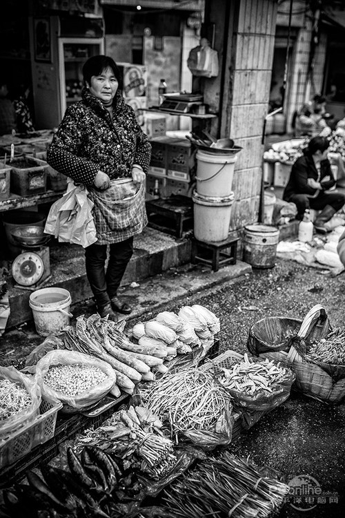 35ZE菜场随拍,F2.2的光圈。后期调整成黑白,增加了对比度,让照片更有层次感。