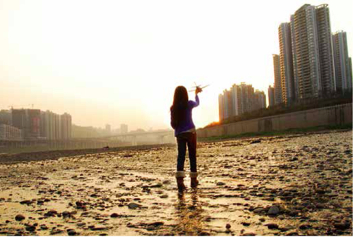 如果景象丰富多元,则可以利用地平线的线性来分割整理视框,同时要注意图片的延伸性是否足够,才能成功营造出等待者的期盼。重庆的夕阳下,我的心和我手中的小飞机一样,展翅欲飞。