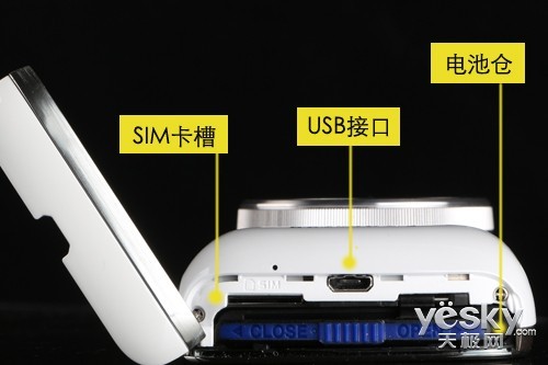 而机身的左侧配备了三脚架插槽跟存储卡插槽,而对于三脚架接口的的设计,S4 zoom的拍摄功能也越发让人期待。