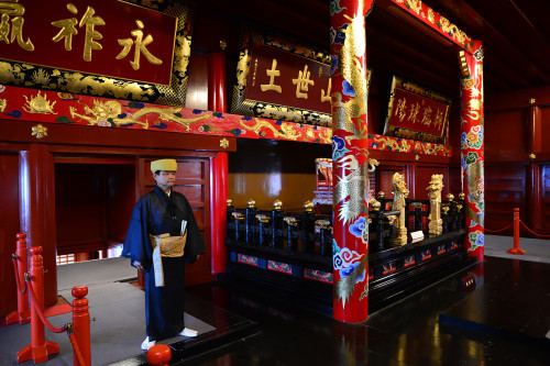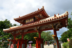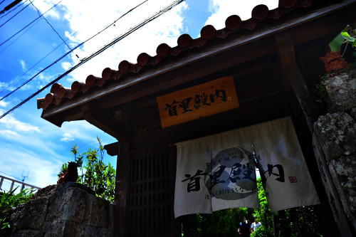 守礼门是琉球的象征,也是首里城的著名观光点。它耸立在首里城公园的大门外,也就是宫殿的入口处,曾经是首里城6个门中的第二个城门。守礼门建于琉球王国第二尚氏王朝4代尚清王时期(十六世纪前半叶),以中国的牌坊为原型,混合了中国唐代建筑的风格和琉球的传统手法:红瓦白泥的对比、两层突出的屋顶,自成稳定的美感,再挂上“守礼之邦”汉字匾额,确实很能代表琉球。这道门曾被指定为国宝,但在太平洋战争中不幸被烧毁。现在所看到的守礼门是在1958年以详细的资料为基础,依原形而重建的。