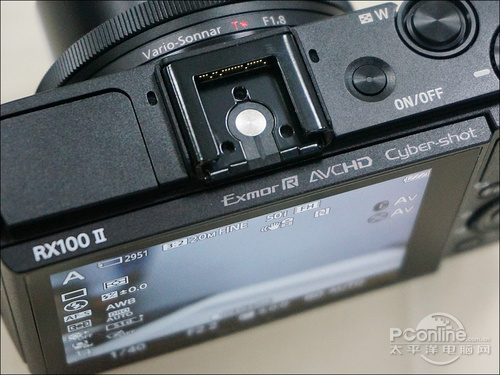 之前RX100是没有热靴的,扩展性不高。RX100 II增加了索尼的多功能热靴,除了标准接口外,热靴内还带有索尼的扩展接口,方便使用外接EVF、外接定向麦克风等等,而玩闪光灯的朋友,现在也可以用引闪器了。