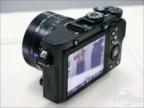 上下翻折屏幕在索尼很多机型上都有应用,本次RX100 II所使用的翻折结构,让其机身厚度相对于旧款,增加了2.4mm。如果说这是有得有失的话,我觉得这增加的2.4mm厚度是值得的,因为所带来的方便取景的特性相当有用。