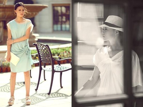 某品牌女装拍摄,上左图为侧光光位,摄影助理手持闪光灯在模特一侧补光,缩小模特脸部明暗光比。