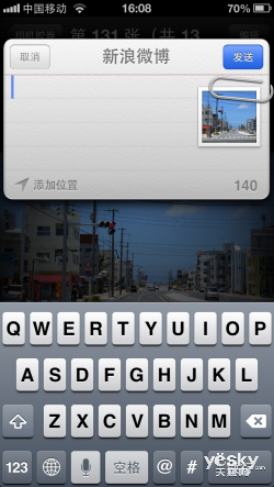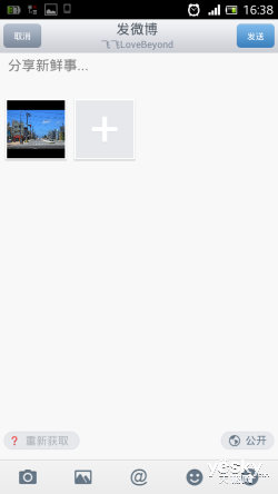 下载完成后,就可以从手机的网络将照片发布出去,与他人即可分享身边的精彩。