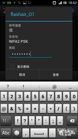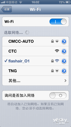如果已将存储卡插入数码相机,并保持电源开通状态,您就会搜索到FlashAir的网络,诸如,我这次使用的卡的网络默认名称“flash_O1”。第一次连接时,需要输入默认密码“12345678”。