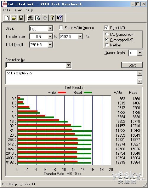 ATTO Disk Benchmark是由ATTO公司出品的一款磁盘/网络性能测试工具,该软件使用了4MB的测试包,数据包按0.5K、1.0K、2.0K直到到8192KB进行分别读写测试,测试完成后数据用柱状图的形式表达出来。很好的说明了文件大小比例不同对磁盘速度的影响。