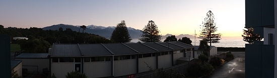 经过一晚上的休整,第二天起床身体已经完全没有问题了,烤起了面包做起了早餐,从住宿的滨海波浪酒店窗外就可以欣赏到凯库拉海岸的日出。