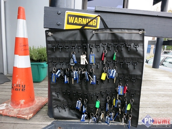 Omega租车行门口的钥匙,如果遇到还车时店里却没有人,那么就请把钥匙挂在这里就可以走人了。