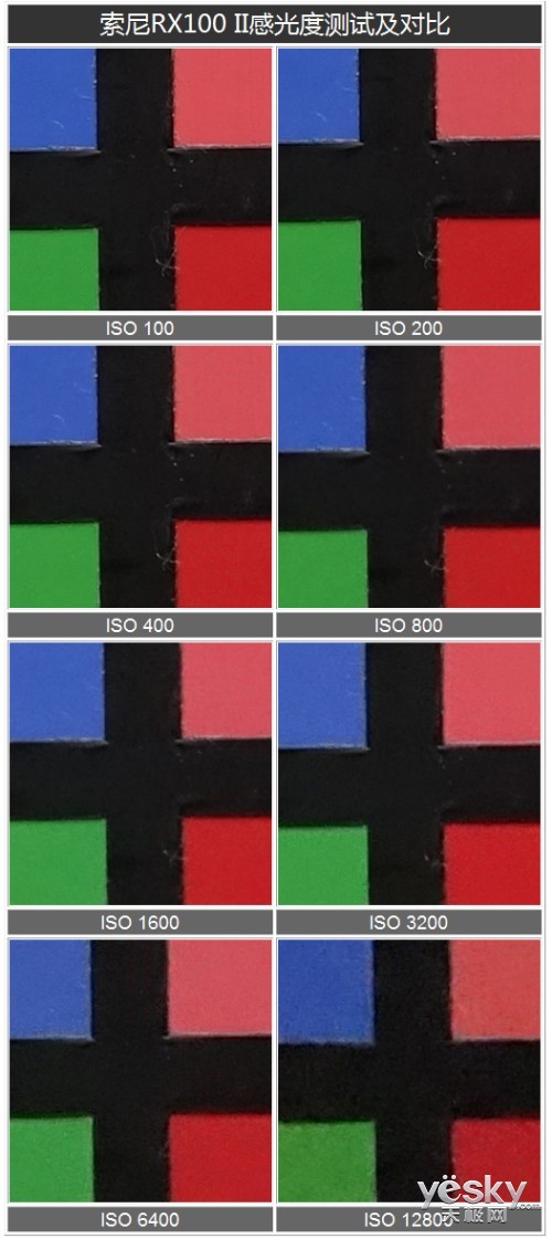 从测试结果来看,在ISO处于100到1600时,RX100 II的表现相当不错,ISO上升至3200到12800时噪点开始增多,所以大家在夜晚或暗光情况下应该注意拍摄的效果。
