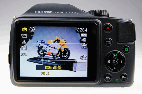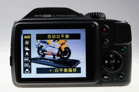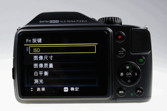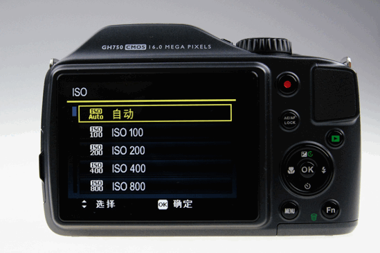 根据不同的光线环境,用户可以自己进行白平衡的设置,来保证照片色温的正常,当然如果拿捏不准,可以设置成默认的自动白平衡。明基GH750的感光度由ISO100-12800,用户可以根据光线的强弱来选择需要的感光度数值。相机默认的Fn键设置的是ISO感光度设置,小编也建议用户完全不需要修改这个设置,因为相机没有直接更改ISO感光度的快捷键,而ISO感光度也是经常需要修改的。当然如果用户习惯于使用自动ISO感光度,那么就可以将Fn键改为其他需要的设置了。