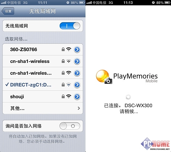 这是我们就可以打开智能手机的无线网络管理来找到并连接上索尼WX300了。