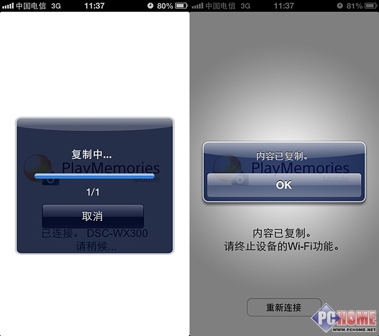 与智能手机连接之后我们会在索尼WX300上看到这样的显示,此时请保护好相机,别去点击退出哦。