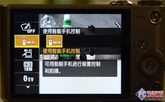 之前在介绍机身外观的时候笔者就特别拍摄了索尼WX300机身上的那枚Wifi标记。所以在这里做一下详细的操作介绍吧。在开机状态下按下菜单键,我们就 可以轻松的找到这个选项,打开它我们就可以使用智能手机对其进行遥控操作了,当然如果是第一次使用的话我们还需要进行一些简单的设置。