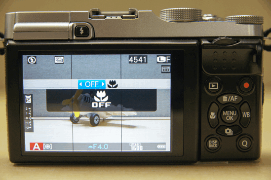 看按键上的标识就能够知道这个按键用来进行切换微距拍摄模式,在近距离拍摄小物体或者是花草的时候是很好用的功能。
