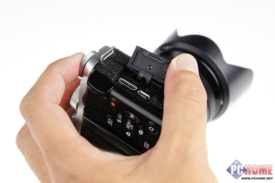 与前两代一样,X-M1在机身右侧安置了HDMI mini和USB mini 接口,左侧与X-E1一样并没有安置和X-Pro1一样的同步端口。