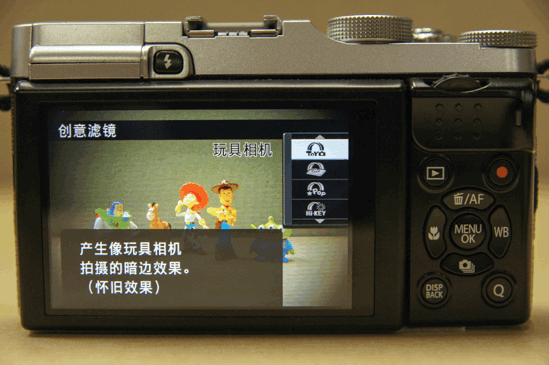 在前两代产品中没有出现的创意滤镜被加入到了X-M1的菜单中,这增加了相机的可玩性,一些常见的滤镜风格以及单色模式都能在创意滤镜菜单中找到。