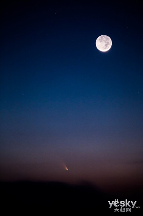 C/2011 L4泛星彗星应该算是2013年3月份的主题了,太阳刚刚落山,一勾新月在长时间曝光下显现出来了地球照的部分,犹如满月,这时使用EF 70-300mm F4-5.6L IS USM,将新月和泛星彗星同时纳入画面中。