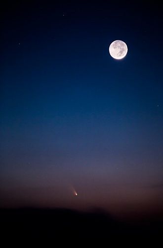 C/2011 L4泛星彗星应该算是2013年3月份的主题了,太阳刚刚落山,一勾新月在长时间曝光下显现出来了地球照的部分,犹如满月,这时使用EF 70-300mm F4-5.6L IS USM,将新月和泛星彗星同时纳入画面中。
