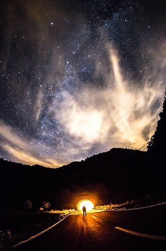 入夜,久违的繁星出现在天际,与隧道的灯火共同照亮着地面,站在路边仰望着星空,夏季大三角升上天空,天穹上的云朵被城市的辉光照亮,盖住了夜空原有的色彩,与浩瀚的星海相比,人类是如此渺小