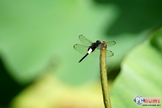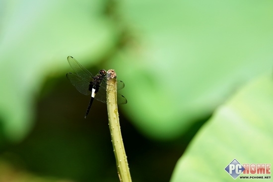 由于台风来临加上夏天气压普遍较低,在荷花池上有非常多的蜻蜓飞舞。当然,风不断地吹动导致蜻蜓频繁地飞动,停留在花蕾或者莲茎上的时间很短。鉴于蜻蜓的体积本来就小,除了拍摄技巧外,对对焦速度和精确性都提出了很高的要求。如下图小编拍摄的几张蜻蜓中,索尼SLT-A99加上这颗新款的70-400镜头整体的出片率还是非常高的,总体对焦性能令人满意。