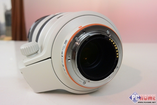 卡口外圈醒目的橙色外圈具有明显的索尼特征,可以看到由于镜身庞大加上A卡口系统的法兰距比较长,因此后组镜片的容量有所缩减。与此同时,脚架固定位也是这类重炮镜头必备部件之一。