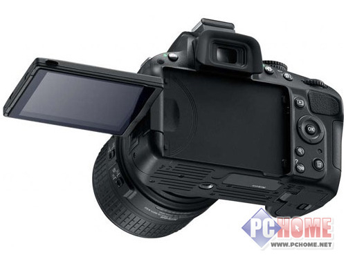 尼康D5100外观方面,尼康D5100采用黑色的机身设计,三围尺寸为128×97×79mm,重约510g。配备了3英寸92.1万像素翻转液晶屏,可进行亮度调节。