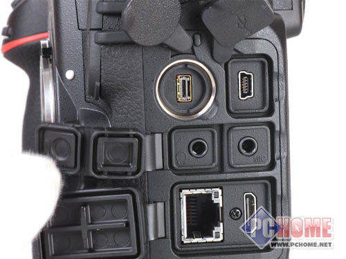 尼康D800支持CF/SD卡双存储功能,提供了HDMI高清接口,AV接口以及USB3.0接口。