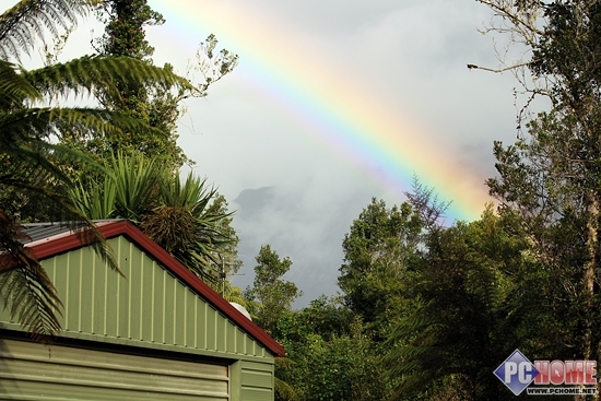 到达酒店后天空居然不作美,突然下起了毛毛细雨,空气中弥漫着湿漉漉的气息,有点和新西兰冬天的气候不相对应,不过这来的也快去的也快,这朵乌云飘过之后很快天空就放晴了,居然还划过了一条很大的彩虹,仿佛伸手就能摸到,这么近距离观赏彩虹还要数第一次,简直仿佛进入仙境一般。