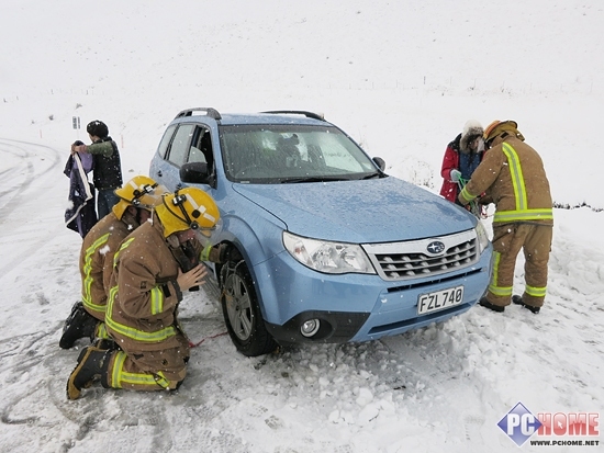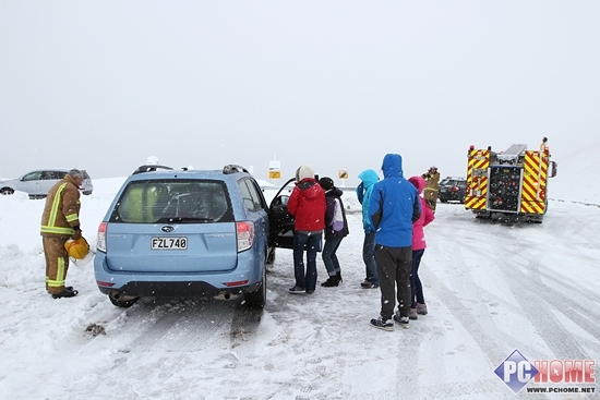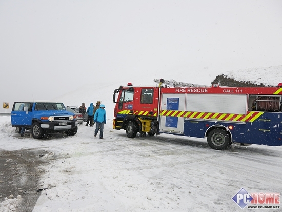 幸运的是此时当地的消防队火速赶到,为困在山顶的车辆实施了救援,并在冰天雪地里为我们绑好了雪链,实在是敬佩新西兰人的敬业精神,最后我们以20码的速度缓慢前行,直到出山底后才将雪链卸下。
