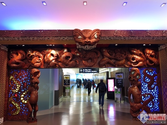 奥克兰机场入关的毛利人雕像,据悉新西兰400万人口中约15%是毛利后裔,属于某个部落,初看我以为是异行呢?。。