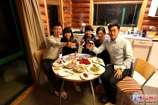 旅友们第一次坐席餐桌享受美食,身体还没完全恢复但又忍不住刺身美食的诱惑于是勉强吃了几口之后,突然反应过来,佳能5D3单反相机不见啦!赶紧打电话给MARK大叔,原来下船虚脱的时候居然忘记拿了,MARK大叔真是好人,当我们驱车离开后他就已经发了邮件给我,让我随时都可以去拿,吃完晚餐后我们就到了MARK大叔家中自提了失散五小时的5D3,如果这种事情在国内也许我就要疯了,新西兰人的素质真是好高好高。