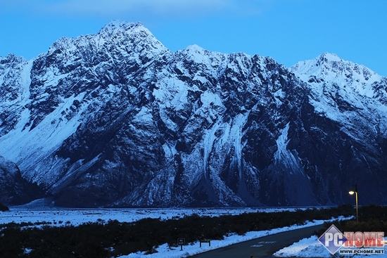 从阳台上遥望窗外风景时虽然有一排小房子有些煞风景,但是我用佳能5D3搭配70-200mm F2.8小白依然可以给雪山一个漂亮的特写,这张照片也是我第一次亲眼见到新西兰的雪山。