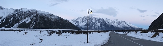 第三天清晨情况依然是糟糕透了,雪居然还没有停!我查阅了任何网上消息和天气预报都说特卡波的雪要5天以后才能完全停下,这是新西兰南岛有史以来最大的雪灾!在房东的指点下从特卡波后方绕行500公里可以返回基督城,这条道是唯一开放的道路但是极不安全,情急之下和伙伴们商量赌一把!
