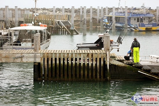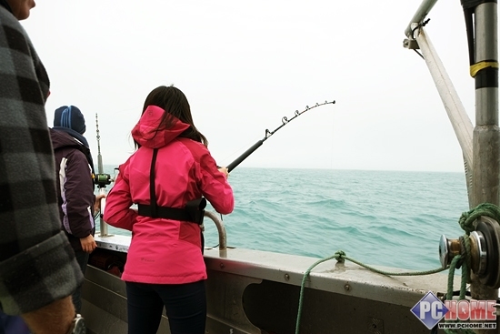 到达雷达显示的鱼群区域后MARK大叔将船熄火,我们准备正式开始下杆钓鱼,虽然天气不好,但是MARK大叔热情不减又是教我们下杆又是帮我们拉钓上来的鱼,我们也跟着他忙的不亦乐乎。