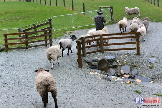 庄主的两只贴身小狗十分厉害,是纯正正宗的新西兰牧羊犬,只要庄主一个口哨它们就能跑到上山把羊群们赶下山,得到了游客们的阵阵掌声。
