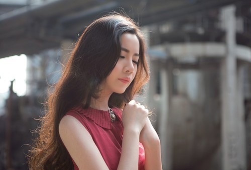 这是一张突出光影的照片,顶逆光很好地刻画出金色的发际光以及模特脸部和手臂的轮廓光,伸出手臂的引导摆姿,让模特的眼神凝视有了依托,烘托出庄重、宁静的画面氛围。强烈的逆光进入画面,产生了大面积的金黄色,营造了富有视觉冲击力的画面氛围。