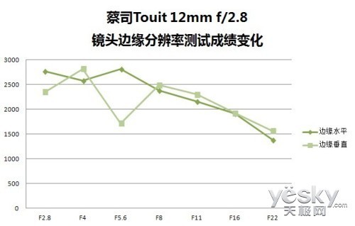 (蔡司Touit 12mm f/2.8镜头边缘分辨率成绩变化)