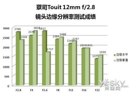 (蔡司Touit 12mm f/2.8镜头边缘分辨率测试成绩)