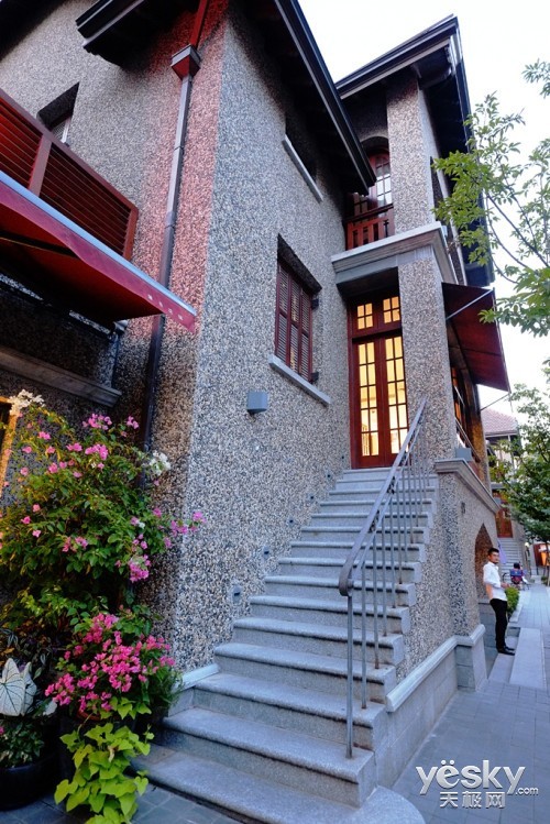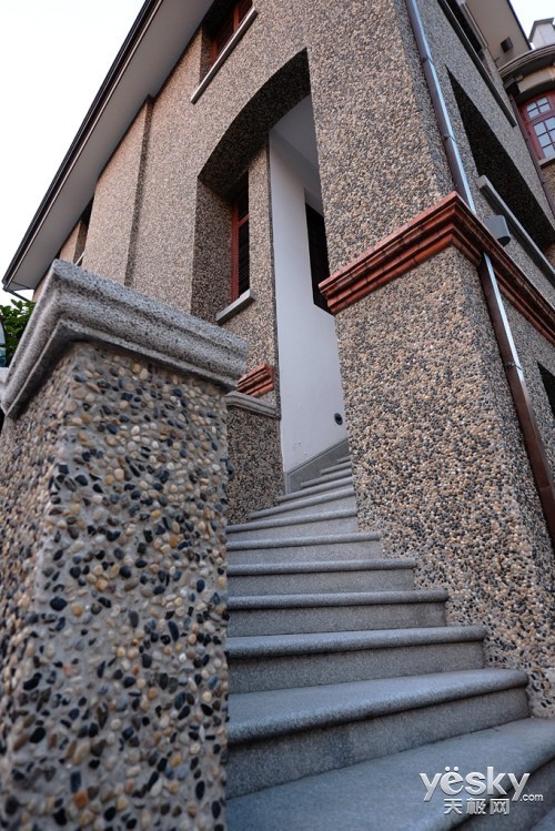 通过广角镜头的透视,可以展现建筑的高大或者宽广,同时这么镜头的畸变控制的非常好,我们看到房屋的棱角都是笔直的没有弯曲。