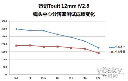 (蔡司Touit 12mm f/2.8镜头中心分辨率成绩变化)