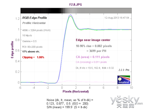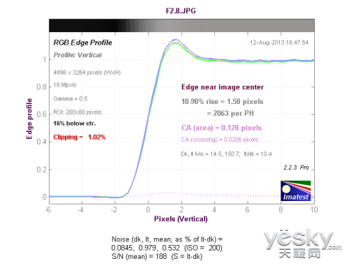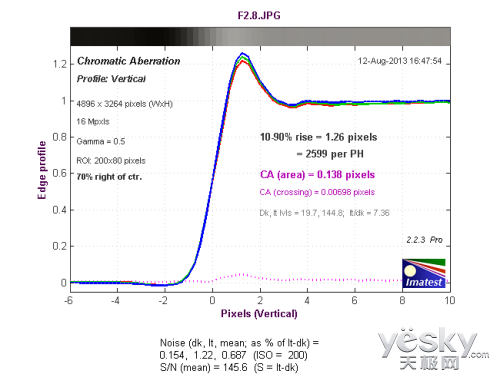 (蔡司Touit 12mm f/2.8镜头中心垂直方向色散测试结果)
